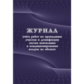 Формат журнала А4. Мягкий переплет, скрепка. Внутренний блок — писчая бумага, 24 листа. Приказ № 107 от 12.08.2004г. «Об организации контроля за очисткой и дезинфекцией систем вентиляции и кондиционирования». В журнале заполняются сведения об объекте проверки, сведения об обрганизации, осуществляющей очистку и дезинфекцию систем вентиляции и кондиционирования воздуха на объекте, результаты санитарно-эпидемиологического обследования систем вентиляции кондиционирования воздуха на объекте, сведения о проведени работ, результаты оценки качества проведенных работ.