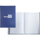 Бухгалтерская книга учета формата А4. Твердый переплет из бумвинила (слой ПВХ на бумажной основе) с тиснением фольгой. Внутренний блок — офсетная бумага, 160 листов в клетку. Книга скреплена с помощью сшивки.