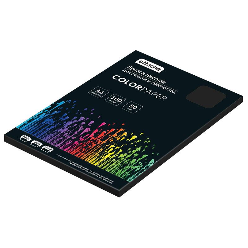 Бумага цветная Attache (черный интенсив), 80г, А4, 100 л