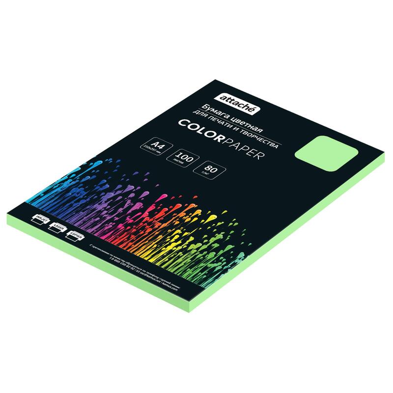 Бумага цветная для печати Attache зеленая пастель (А4, 80 г/кв.м, 100 листов)