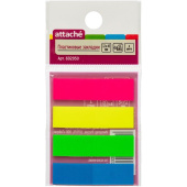 Пластиковые клейкие закладки Attache. Закладки клейкие, ширина которых составляет 12 мм, могут служить закладками в документах, использоваться для записи краткой информации, для выделения текста. Яркие неоновые цвета закладок акцентируют Ваше внимание на нужном моменте в документе или тексте. Прозрачный пластик, из которого они изготовлены, не скрывает при этом самого текста. Клейкие закладки легко удаляются, не оставляя следов и не повреждая бумагу.