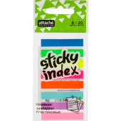 Пластиковые клейкие закладки Attache. Закладки клейкие, ширина которых составляет 8 мм, могут служить закладками в документах, использоваться для записи краткой информации, для выделения текста. Яркие неоновые цвета закладок акцентируют Ваше внимание на нужном моменте в документе или тексте.