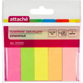 Бумажные клейкие закладки Attache. Закладки клейкие, ширина которых составляет 14 мм, могут служить закладками в документах, использоваться для записи краткой информации, для выделения текста. Яркие неоновые цвета закладок акцентируют Ваше внимание на нужном моменте в документе или тексте.