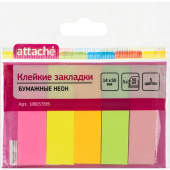 Бумажные клейкие закладки Attache. Закладки клейкие, ширина которых составляет 14 мм, могут служить закладками в документах, использоваться для записи краткой информации, для выделения текста. Яркие неоновые цвета закладок акцентируют Ваше внимание на нужном моменте в документе или тексте.