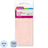 Стикеры Attache в формате 38×51 мм, розового цвета, состоят из 100 листов в каждом блоке (всего 300 листов). Идеально подойдут для сотрудников творческих профессий и руководителей: рекомендуется для использования в процессе совещаний, обучения, мозговых штурмов. Тон стикеров — пастельный. Плотность бумаги составляет 62 г/кв.м, клейкий слой — 22