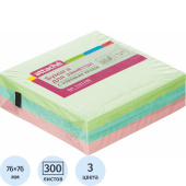 Стикеры Attache в формате 76×76 мм, состоят из 300 листов упакованных в пленку. Стикеры из 3 пастельных цветов. Плотность бумаги: 62 г/кв.м. Клейкий слой — 18 2