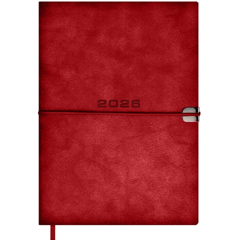 Ежедневник датированный 2026 год Escalada искусственная кожа А5 176 листов красный с фиксирующей резинкой (красный обрез), 70275