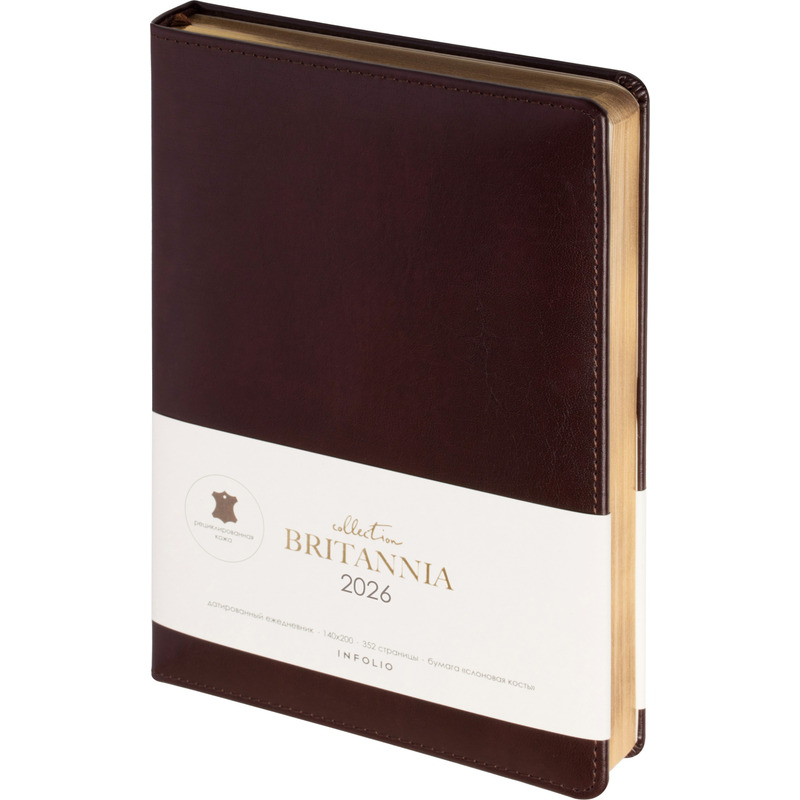 Ежедневник датированный 2026 год InFolio Britannia натуральная кожа А5 176 листов бордовый (золотистый обрез), I1710/bordo