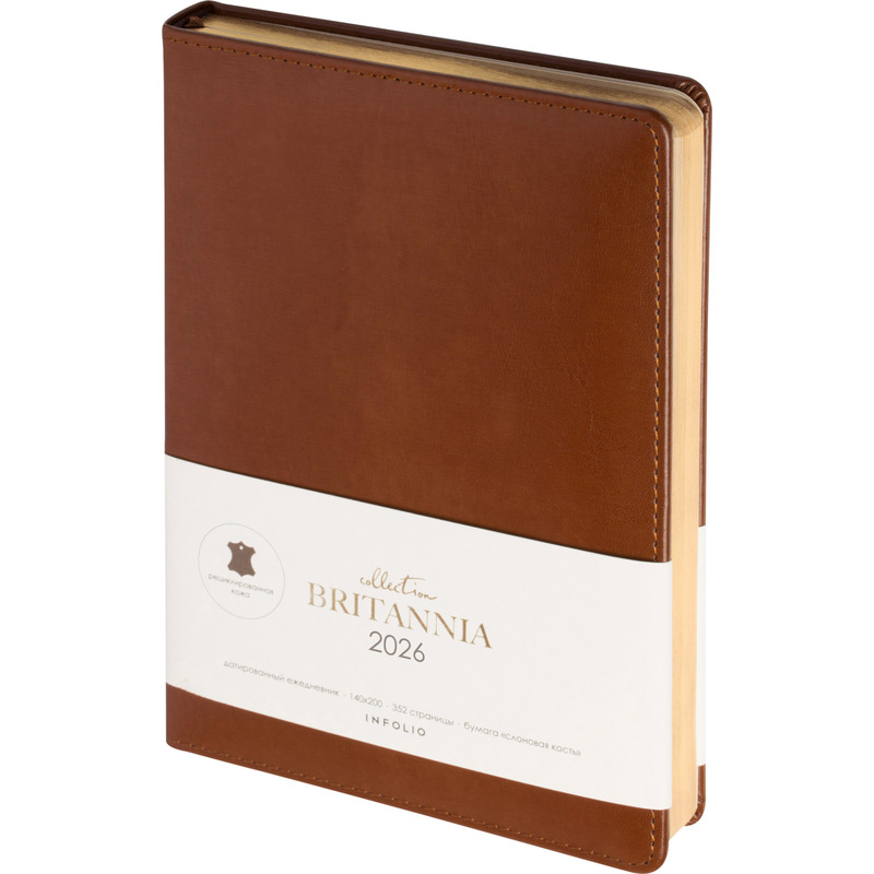 Ежедневник датированный 2026 год InFolio Britannia натуральная кожа А5 176 листов коричневый (золотистый обрез), I1710/brown