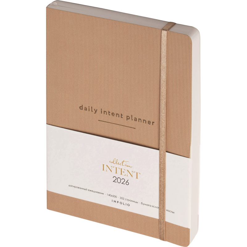 Ежедневник датированный 2026 год InFolio Intent искусственная кожа А5 176 листов бежевый, I1729/beige
