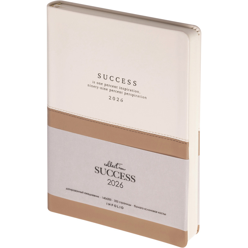 Ежедневник датированный 2026 год InFolio Success искусственная кожа А5 176 листов, I1719emb/white-beige