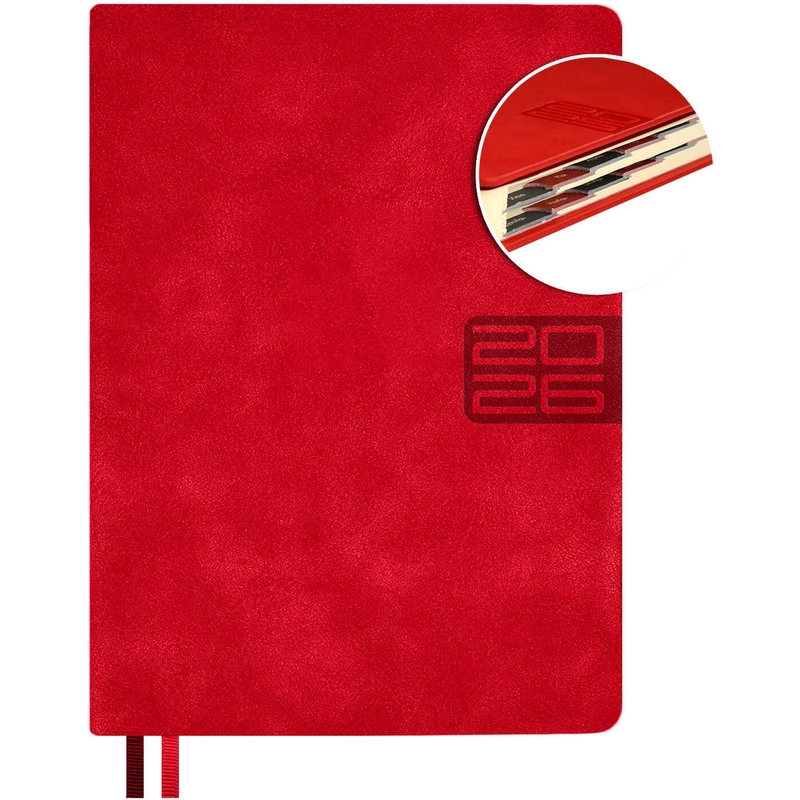 Ежедневник датированный 2026 год Escalada искусственная кожа А6+ 176 листов красный (красный обрез), 70293