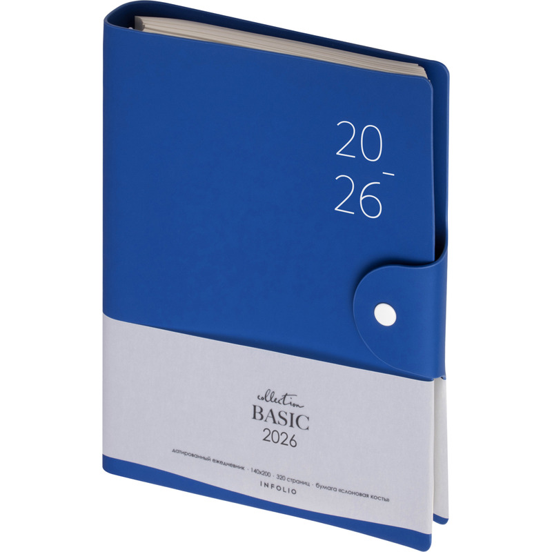 Ежедневник датированный 2026 год InFolio Basic искусственная кожа А5 160 листов синий, I1751emb/blue