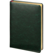 Благородство и статусность придают ежедневнику отстрочка по периметру в тон, скругленные углы, закладка-ляссе бордового цвета, золотой срез.