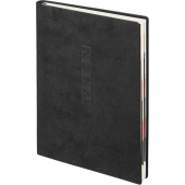 Стиль и дизайн обложки данного ежедневника можно отнести к универсальному офисному. Обложка выполнена в однотонном черном цвете с блинтовым тиснением, что придает изделию строгий и элегантный вид. Дизайн обложки спокойный и лаконичный, без лишних элементов.