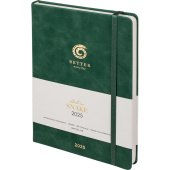 Датированный внутренний блок в линейку на 176 листов (352 страницы) — из высококачественной бумаги цвета слоновой кости плотностью 70 г/м2 со скругленными уголками. Информационный блок ежедневника включает в себя: титульный лист, календари на 2025-2026 гг, раздел «планы на год», развороты для заметок в начале и конце блока, планнер перед каждым месяцем.