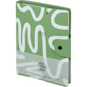 Мягкая обложка из приятной искусственной кожи с цветной печатью и тиснением фольгой имеет скругленные уголки и фигурный клапан на кнопке, который не позволит растрепаться страницам. Удобное крепление на полускрытой спирали позволит удалять ненужные листы, не повредив при этом сам блок.