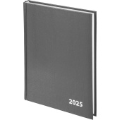 Блок: датированный на 2025 год, 160 листов (320 страниц), бумага белый офсет, плотностью 55 г/кв.м, печать в блоке в 1 краску. Цвет обреза белый. Содержит информационно-справочный блок — личные данные, календарь на 2025 и 2026 год, раздел «планирование на год», раздел «дни рождения», информацию о праздниках России, единицах измерения, раздел «питание и расход калорий», раздел «товарный штрих-код производителя», информацию о телефонах первой необходимости и официальных сайтах РФ. На один будний день приходится одна страница, временной интервал — 1 час с 8:00 до 20:00 свободные строки. Нет петли для ручки. Удобен для записи переговоров, встреч. -
