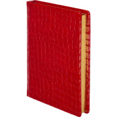 Ежедневник А5 датированный на 2025 год, цвет красный 143×205 мм, ляссе золотого цвета, 352 страницы, тонированный блок с печатью в 2 краски, обрез блока окрашен в золотой цвет, календарь на 2025-2028 гг. Обложка выполнена из высококачественной глянцевой искусственного кожи с тиснением аллигатор. Лак обеспечивает глубину и яркость цвета подчеркивая уровень качества и оригинальность, с поролоном. Блок: офсет 80 г/м2 (линейка). Содержит информационно-справочный блок — праздники России, международные коды городов России, цифровые коды ГИБДД, справочник неметрических единиц и перевод в метрические, размеры одежды. Вставка — алфавитный блок без вырубки. Нет петли под ручку. Поставляется упакованным в полипропиленовом пакете.