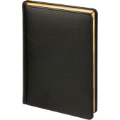 Торговая марка Attache Плотность листа бумаги 70 г/кв.м Страна происхождения Россия Количество листов 168 шт. Вид линовки линейка Формат А5 Кол-во единиц продаж в промежуточной упаковке (кратность) отсутствует Подходит под персонализацию да Подарочная упаковка нет Размер, см 14.5x20.5 Материал обложки искусственная кожа Тип крепления сшивка Дизайн обложки однотонный Вид обложки твёрдая Отделка обложки отсутствует Цвет обложки чёрный Внутренний блок офсетная бумага Печать блока 2 краски Ориентация вертикальная Фиксирующая резинка нет Цвет обреза золотистый Скругленные углы листа да Ляссе да Перфорация уголков Нет Прострочка по периметру Да Петля под ручку Нет Цвет бумаги в блоке белый Цветной обрез Да Наличие кармана Нет Вырубка блока Нет Год 2026 Календарь внутри на 2 года -