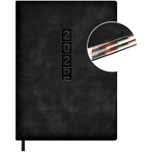 Ежедневник датированный 2026 год Escalada искусственная кожа А6+ 176 листов чёрный (черный обрез) Обложка: мягкий переплёт, запаянный край, блинтовое тиснение, обстрочка по периметру — нет, скруглённый корешок, прямые углы обложки. Внутренний блок: ниткошвейный, кремовый офсет 70 г/кв.м, печать в две краски (линия), прямые углы блока, перфорация углов блока — есть, справочный материал — есть. Красочность форзаца: печать пантоном. Закладка: одно ляссе. Каптал: есть. Особенности: вырубка блока по месяцам, в блоке использованы мотивирующие высказывания экстраординарной личности, предпринимателя и миллиардера, титулованного «Провидца века», шоумена и телеведущего, бывшего владельца конкурса красоты «Мисс Вселенная» и дважды президента США — Дональда Трампа. Индивидуальная упаковка: промостикер + ПЭТ-пакет.