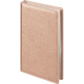 Ежедневник формата А5 недатированный Attache Metal 160 листов пудровый. Ляссе серебристого цвета, 160 листов, тонированный блок с печатью в 2 краски, обрез блока окрашен в серебристый цвет, календарь на 2024-2027 г. Обложка выполнена в универсальном стиле из искусственной кожи с эффектом металлик имитирующего натуральншую кожу, по периметру обложки выполнена прострочка нитью в тон обложки. Блок: офсет 80 г/м2 (линейка). Содержит информационно-справочный блок — праздники, международные коды городов России, цифровые коды ГИБДД, справочник неметрических единиц и перевод в метрические, размеры одежды. Вставка — алфавитный блок без вырубки. Нет петли под ручку. Поставляется в термоусадочной пленке.