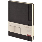 Классический ежедневник в книжном переплете для деловых людей. Выполнен из искусственной кожи в неброском черном цвете. Удобный дополнительный функционал обложки: карман для бумаг и фиксатор для ручки. Такой ежедневник всегда приятно иметь под рукой. Информативный раздел со справочными материалами (часовые пояса, аэропорты Европы, телефонные коды, расход калорий, размеры одежды, города миллионники РФ и СНГ) и страничка для личной информации. Плотность бумаги 70-90 г/кв.м.