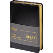 Ежедневник недатированный Attache Gold искусственная кожа А6 160 листов чёрный (золотистый обрез) Ежедневник формата A6 предназначен для компактного ведения записей и планов без указания дат. Обложка выполнена из искусственной кожи чёрного цвета с тиснением и оформлена в строгом однотонном стиле. Твёрдый переплёт сохраняет форму изделия, а сшивка внутреннего блока обеспечивает его прочность при ежедневном использовании. Внутренний блок состоит из 160 листов тонированной офсетной бумаги плотностью 80 г/кв.м. Страницы напечатаны в две краски и размечены в линейку. Перфорация уголков и вырубка блока упрощают навигацию. Скруглённые углы листов делают перелистывание более удобным. Золотистый обрез придаёт ежедневнику элегантный внешний вид. Размер изделия — 10.8×15.3 см. Внутри расположен календарь на два года. Ежедневник подходит под персонализацию.