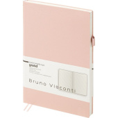 Ежедневник недатированный Bruno Visconti Grand искусственная кожа отсутствует А5 128 листов пудровый Недатированный ежедневник формата А5 выполнен в мягкой пудровой обложке из искусственной кожи. Конструкция дополнена петлёй под ручку и двойным ляссе, закреплённым на корешке. Ежедневник оценят те, кто привык обращать внимание на мелкие, но важные детали. Внутренний блок содержит 128 листов офсетной тонированной бумаги плотностью 80 г/кв.м с линовкой и печатью в одну краску. В начале предусмотрены 14 страниц справочной информации. Ежедневник сшит, не имеет скруглённых углов и предназначен для персонализации.