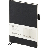 Ежедневник недатированный Bruno Visconti Grand искусственная кожа отсутствует А5 128 листов чёрный Недатированный ежедневник формата А5 выполнен в мягкой гибкой обложке из чёрной искусственной кожи. Модель оснащена двойным ляссе, зафиксированным на корешке нестандартным способом, а также петлёй под ручку. Внутренний блок включает 128 листов бежевой офсетной бумаги плотностью 80 г/кв.м с линовкой и печатью в одну краску. В начале содержатся страницы для справочной информации на 14 листах. Переплёт выполнен на сшивке. Ежедневник подойдёт для тех, кто ценит функциональность и внимание к деталям.