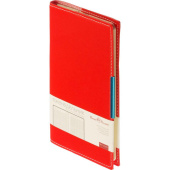 Еженедельник недатированный Bruno Visconti Metropol, формат А6 (94×169 мм). Обложка красного цвета из высококачественного переплетного материала имеет гибкую, но невероятно прочную фактуру, подходящую, в том числе для тиснения. Эффектная отстрочка белыми нитками по контуру и металлический декор являются оригинальными деталями отделки. Недатированный еженедельник компактного формата А6 состоит из 160 страниц, объединенных в сменный блок. Линовка блока — клетка, с указанием дней недели. Бумага бежевого цвета обладает высшим качеством и плотностью 70-90 г/кв.м. Информационно-справочный блок, размещенный на 18 страницах является источником полезной информации, которая пригодится при ведении бизнеса.