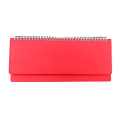 Планинг недатированный Velvet. Размер планинга — 305×130 мм. Количество листов — 64 (128 страниц). Блок из белой бумаги плотностью 70 г/кв.м. Модель на спирали, обложка выполнена из искусственной кожи красного цвета. Прострочка по периметру обложки, печать в 2 цвета. Готов к персонализации.