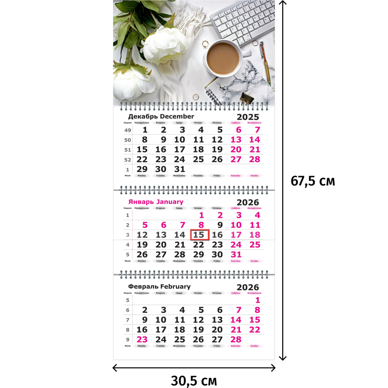 Календарь настенный 3-х блочный 2026 Офис 30.5x67.5 см