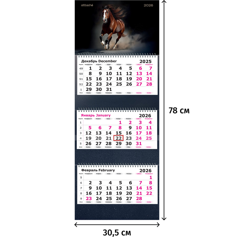 Календарь настенный 3-х блочный 2026 Лошадь 30.5x67.5 см