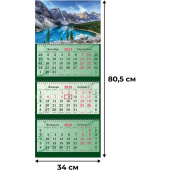 Настенный календарь трехблочный 2025, Супер-Премиум, 340×805, Гор. озер, 100 г/м2.