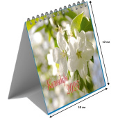 Обложка и блок выполнены из мелованной бумаги плотностью 120 г/кв.м. Этот материал отличается своей прочностью и качеством, а полноцветная печать делает иллюстрации яркими и насыщенными. Подставка календаря изготовлена из мелованного картона высокой плотности 300 г/кв.м. Этот материал придает конструкции дополнительную устойчивость, что позволяет календарю уверенно стоять на поверхности стола.
