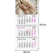 Календарь настенный 3-х блочный 2026 Котёнок 30.5×67.5 см Настенный трёхблочный отрывной календарь. Общий размер календаря — 305×675 мм. Шпигель — форматом 305×195 мм изготовлен из мелованного целлюлозного картона. Блок — форматом 290×140 мм, изготовлен из офсетной бумаги 80 г, печать в 2 цвета. Крепление: каждая секция на металлическом гребне, с бегунком и люверсом, индивидуальная упаковка.