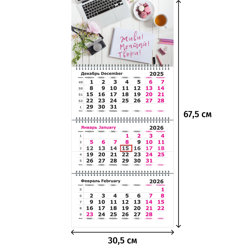 | Календарь настенный 3-х блочный 2026 Живи мечтай твори 30.5x67.5 см Нет в наличии |