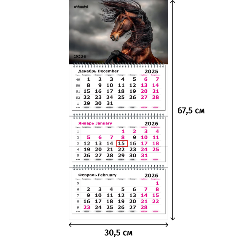 Календарь настенный 3-х блочный 2026 Лошадь 30.5x67.5 см