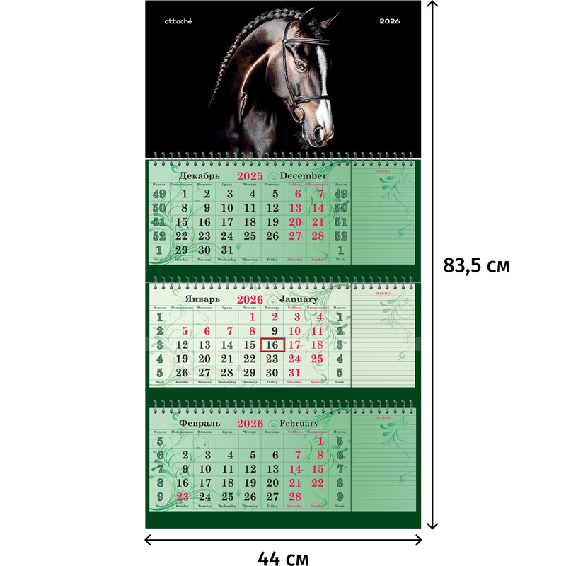 Календарь настенный 3-х блочный 2026 Лошадь 44x83.5 см
