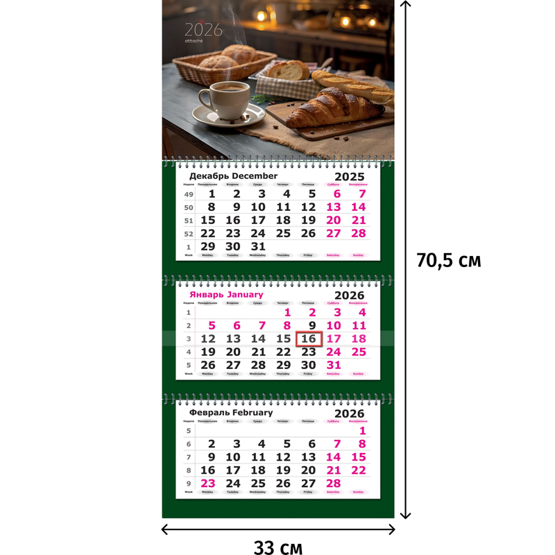 Календарь настенный 3-х блочный 2026 Чашка кофе 33x70.5 см