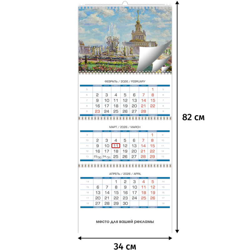 Календарь настенный 3-х блочный 2026 Масленица 34x80.5 см