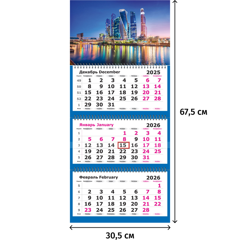 Календарь настенный 3-х блочный 2026 Москва-сити 30.5x67.5 см