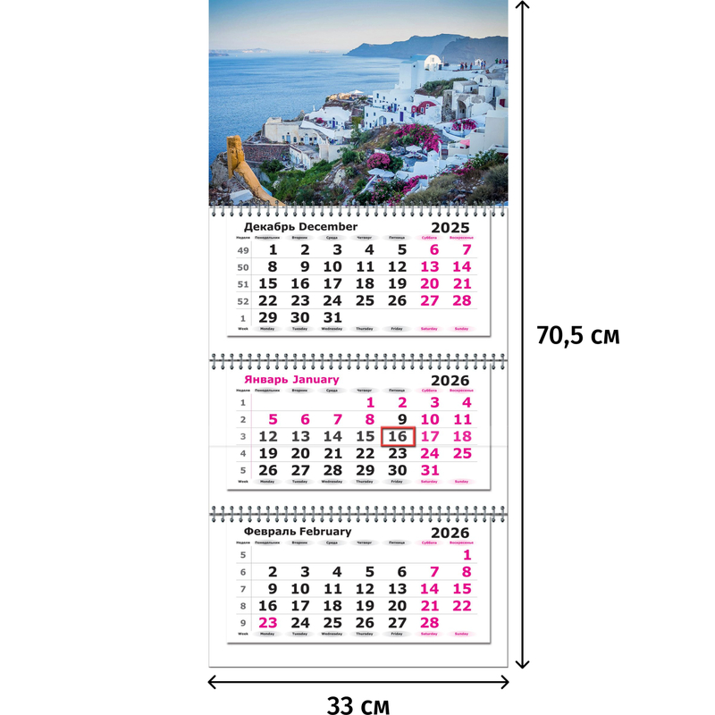 Календарь настенный 3-х блочный 2026 отдых 33x70.5 см
