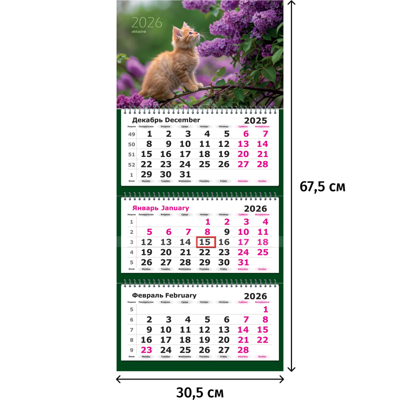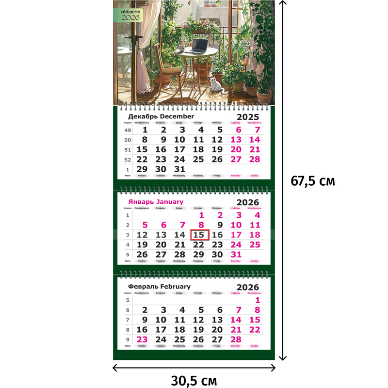 Календарь настенный 3-х блочный 2026 Рисунок офис 30.5x67.5 см