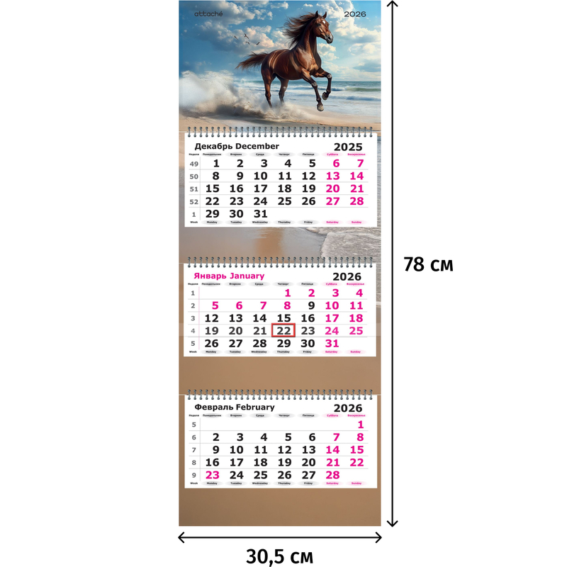 Календарь настенный 3-х блочный 2026 Лошадь и море 30.5x78 см