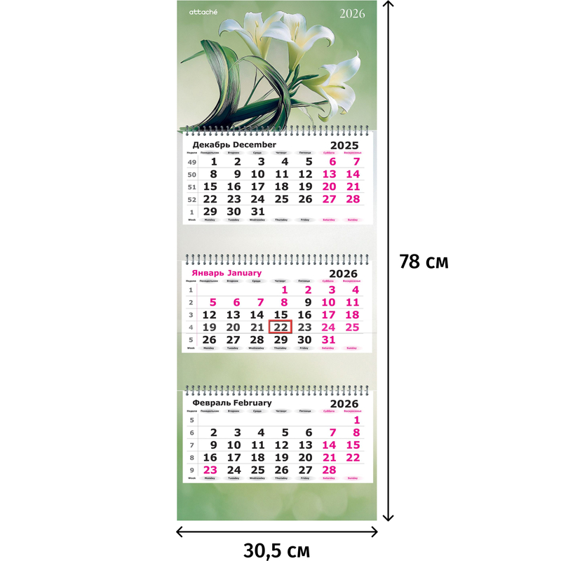 Календарь настенный 3-х блочный 2026 Букет лилий 30.5x78 см