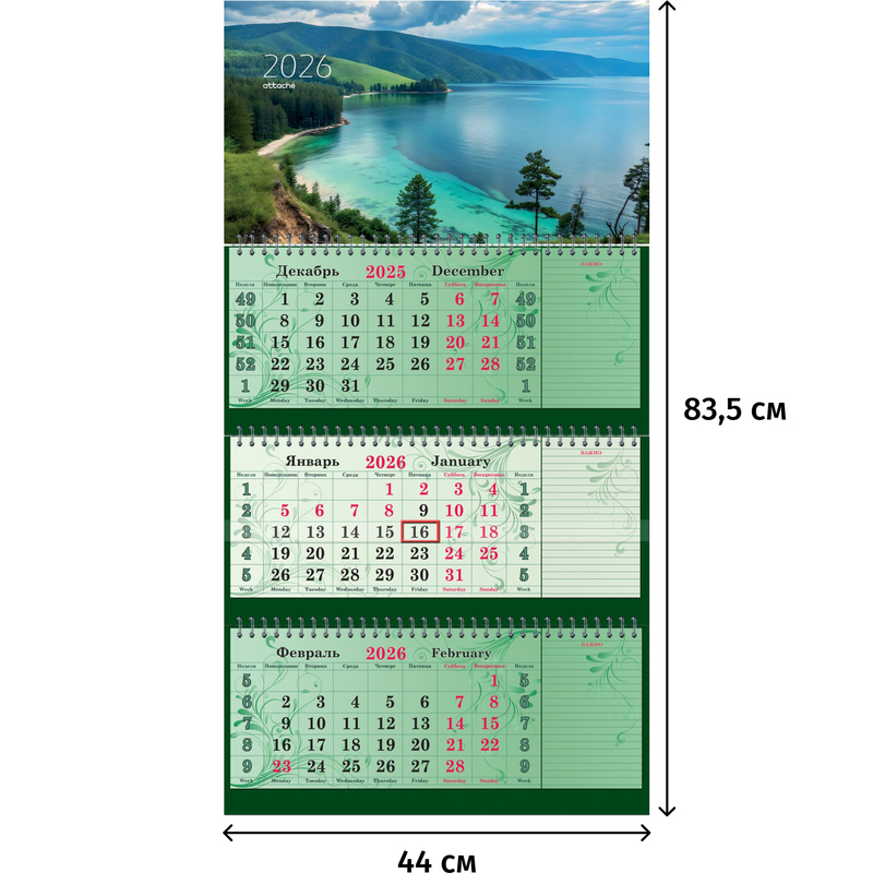 Календарь настенный 3-х блочный 2026 Байкал 44x83.5 см