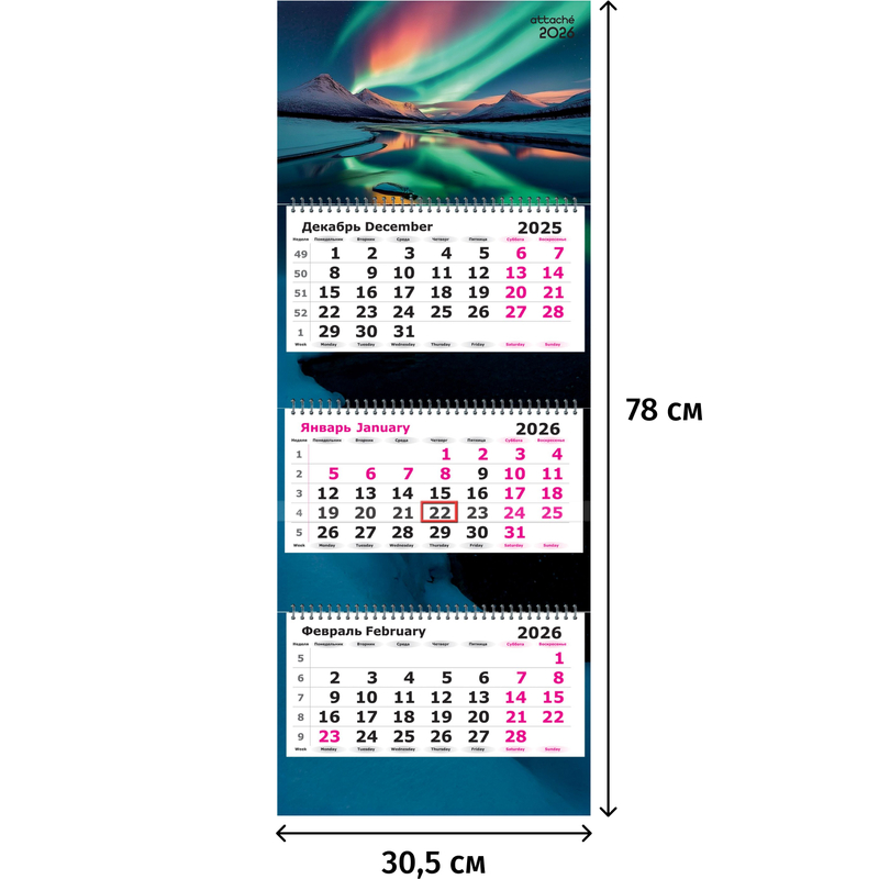 Календарь настенный 3-х блочный 2026 Яркая ночь 30.5x78 см