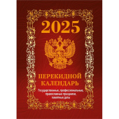 Календарь настольный перекидной 2025 год Госсимволика (10×14 см). Настольный перекидной календарь на 2025 год, 4-красочный, на офсетной бумаге, формат 100×140 мм, в индивидуальной упаковке (термопленка ПВХ). Количество страниц: 320. Расстояние от края до верхнего прокола — 18 мм. Расстояние между проколами — 40 мм. Блок: бумага офсетная плотностью 60 г/м2. Печать блока в четыре краски. Обложка: бумага мелованная плотностью 170 г/м2. Печать обложки в четыре краски. В календаре отмечены государственные, профессиональные, православные праздники, памятные даты.